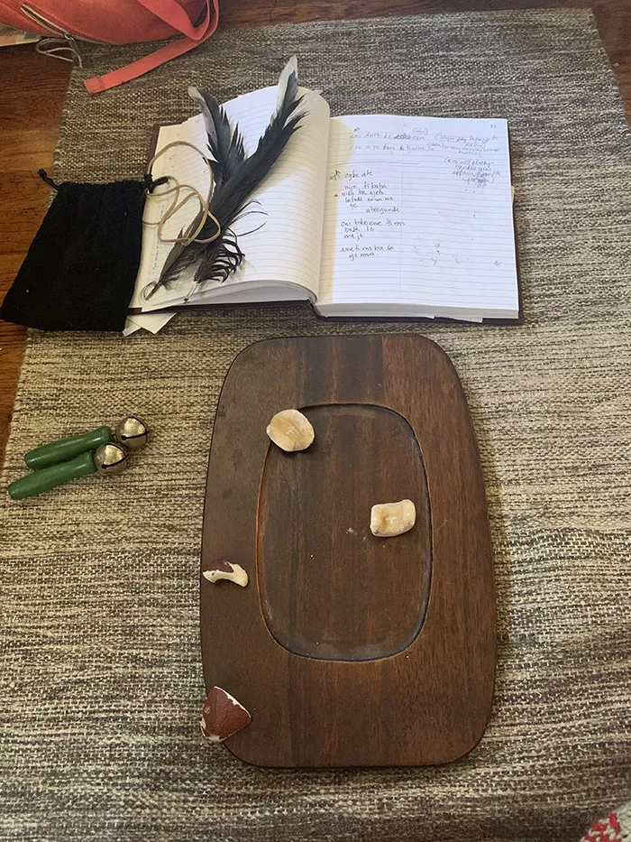 “This particular type of reading also involves initiating a connection with the spiritual world,” says Epps, who co-founded Arts & Crafts with her sister, Pamela Schön, and Elizabeth Kivowitz. “The spiritual world determines how the shells fall. Once the shells fall and the answer to the question is given, there is often guidance or additional information that comes along with the response.”