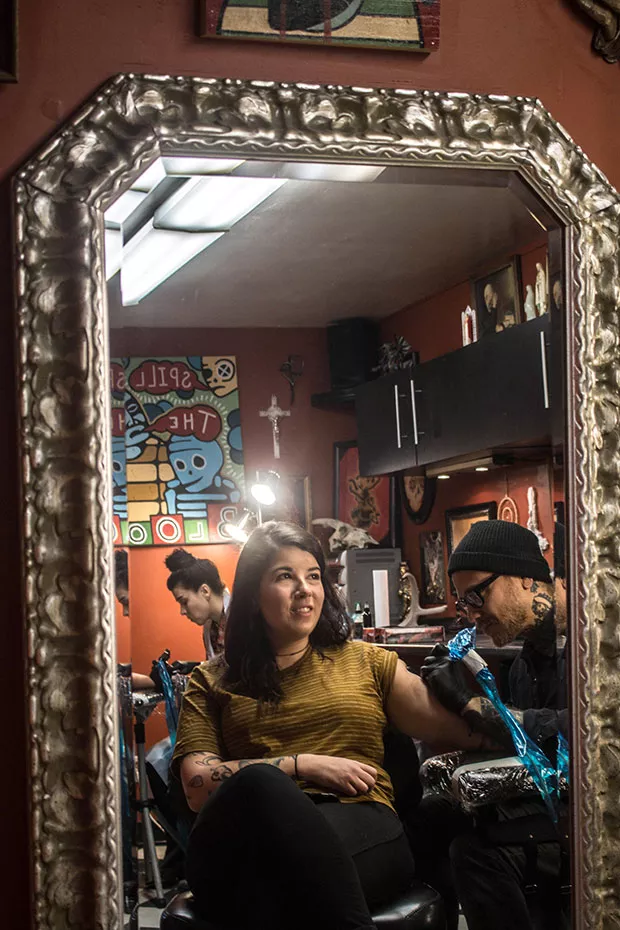 Nati has been tattooing for 15 years, including a decade at Stay Gold. Although he’s aided various causes by playing benefit shows with punk and hardcore bands and donating to animal-rights organizations, this is the first time his visual art has taken a political angle.