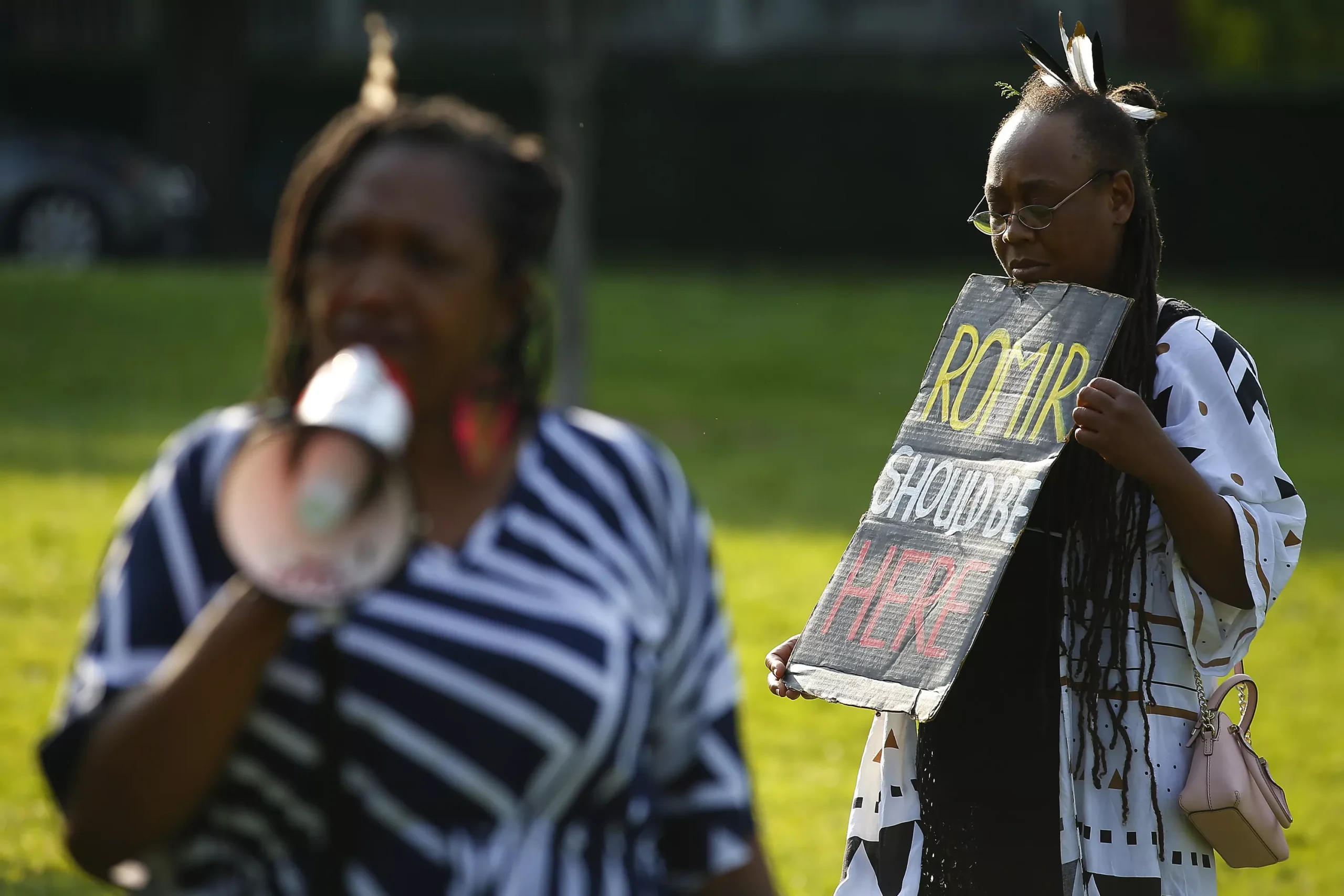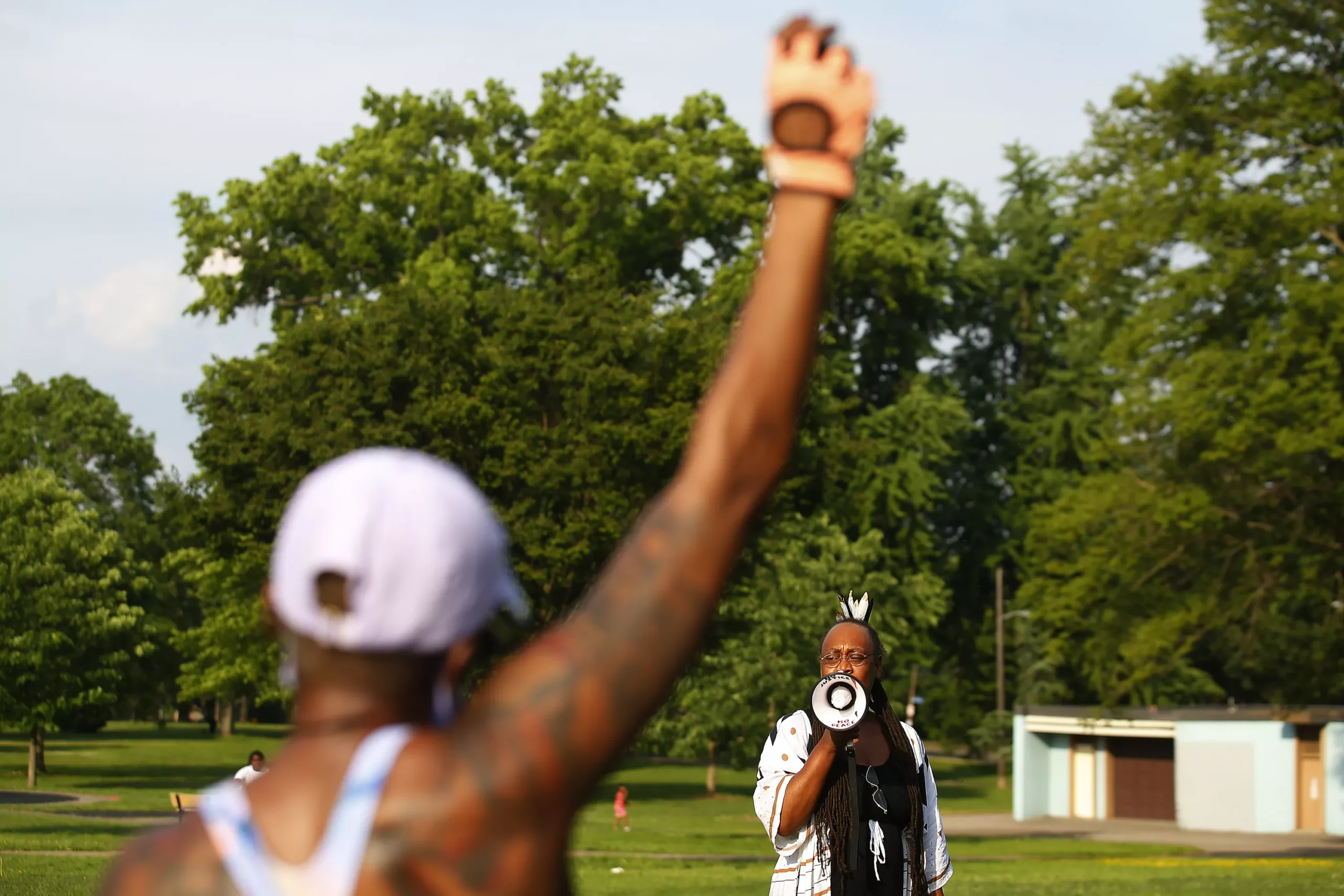Names of those who have been killed at the hands of police officers in the United States are read off at Westinghouse Park on the one-year anniversary of the murder of George Floyd. Credit: CP Photo: Jared Wickerham