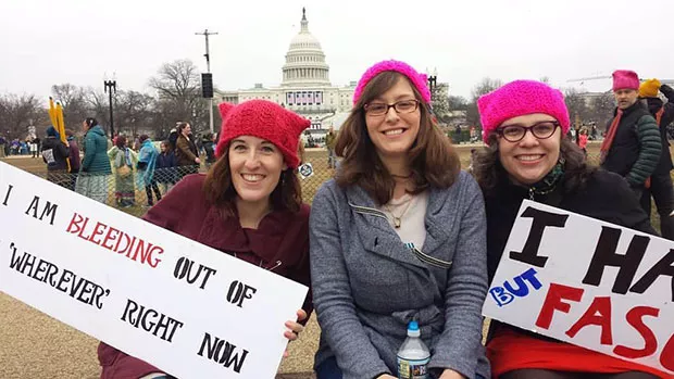 Kara Kernan, Holly Anderton and Marie Rivera-Johnson, all from Pittsburgh, rallied with their signs at the Women’s March on Washington. Credit: CP Photo by Kim Lyons