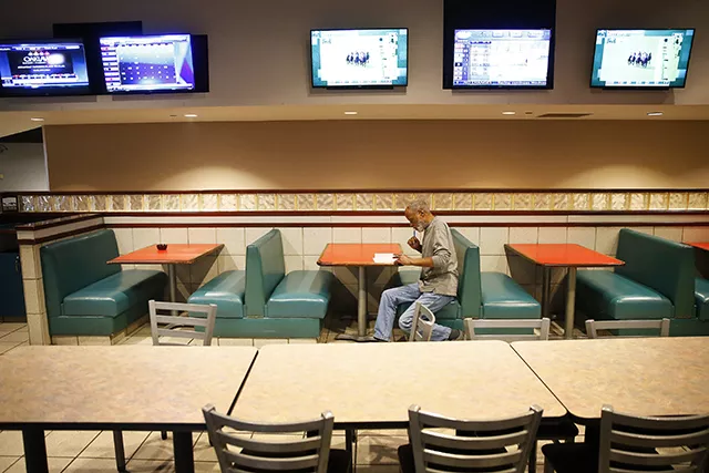 The research was more scant on my second stop, the OTB in Harmar Township, which is owned by the same management as The Meadows. Online information about the OTB is virtually nonexistent. Google is of no help, unless you have a Da Vinci Code cryptex to generate the exact keywords in the proper order. Its address is hidden deep within the dark web and apparently only accessible by Pittsburgh City Paper’s editor-in-chief, who I had to keep asking for the link.