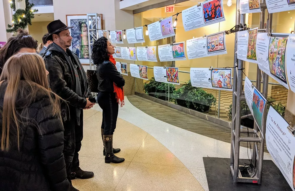The project, done in partnership with the local literary nonprofit Crossing Limits, made its debut last night during a special unveiling ceremony and reading on the seventh floor of the Heinz 57 Center. On display were original poems paired with artwork by Shuman residents. All the pieces will appear on the interiors of PAT buses.