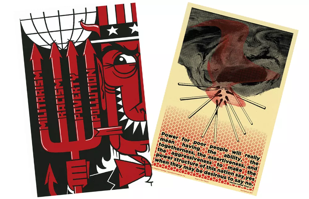 A piece from the work for Poor People’s Campaign Credit: “Four Evils” by Eric J. Garcia and “Power to Poor People” by Paul Kjelland