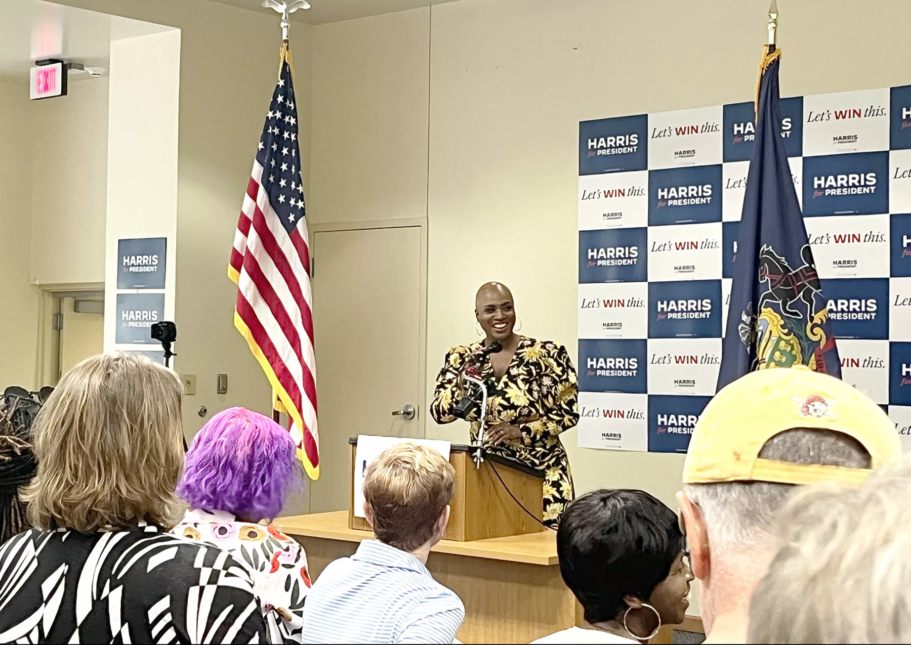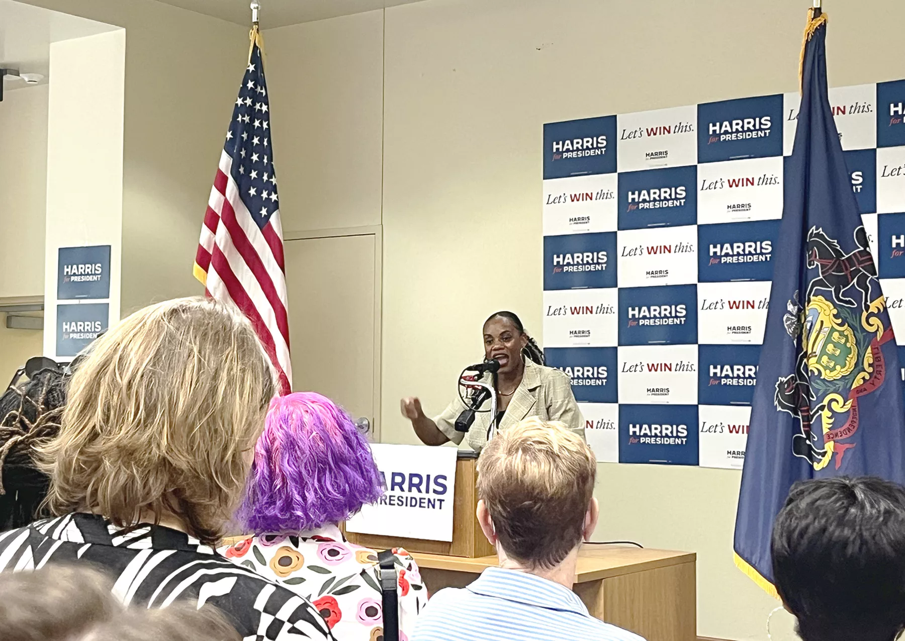 After Erskine, Planned Parenthood Pa. Advocates board member Sydney Etheredge recounted Harris’ career as a statewide politician in California before introducing U.S. Rep. Summer Lee, who said abortion access was part of a broader discussion around equal access to healthcare and support services.