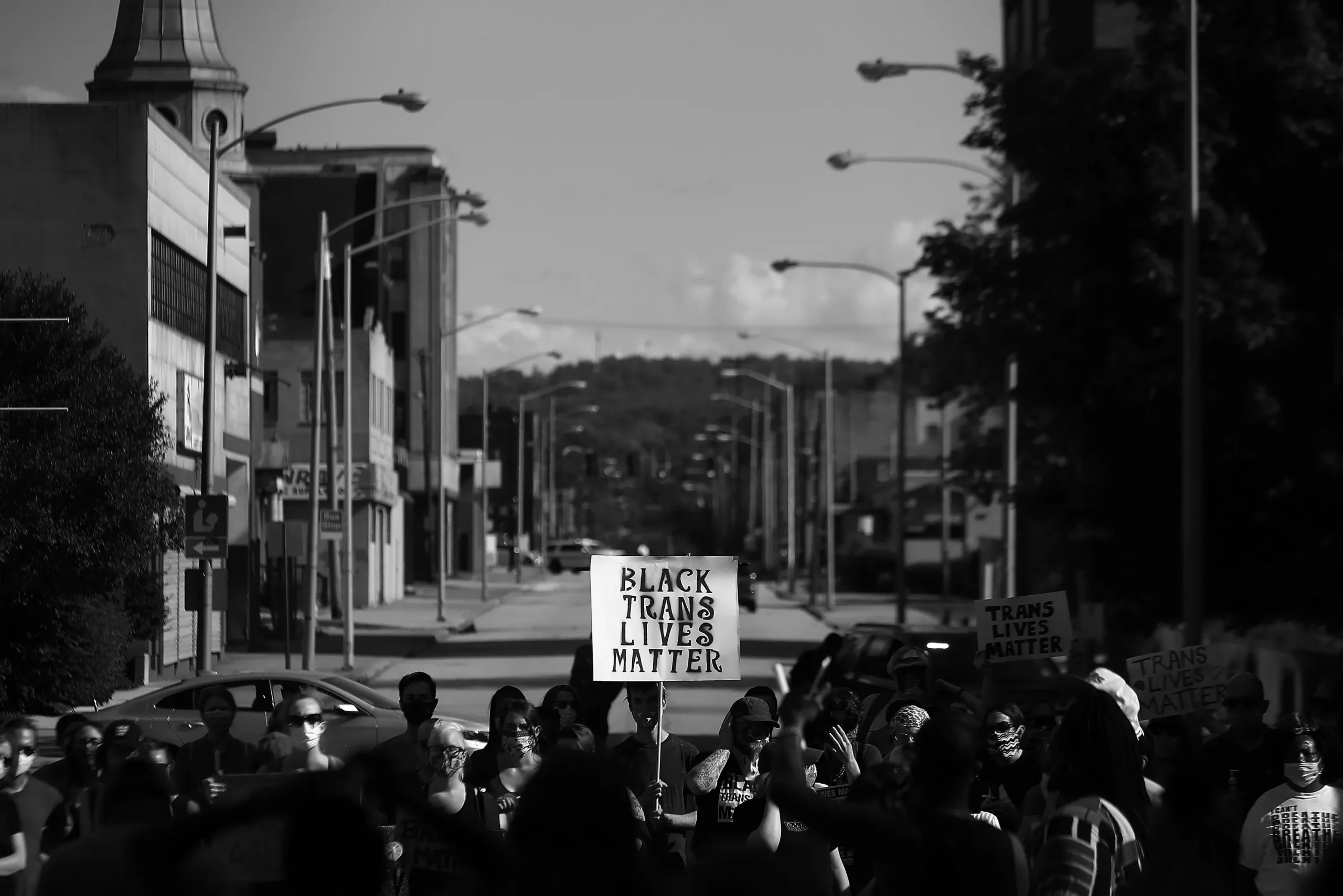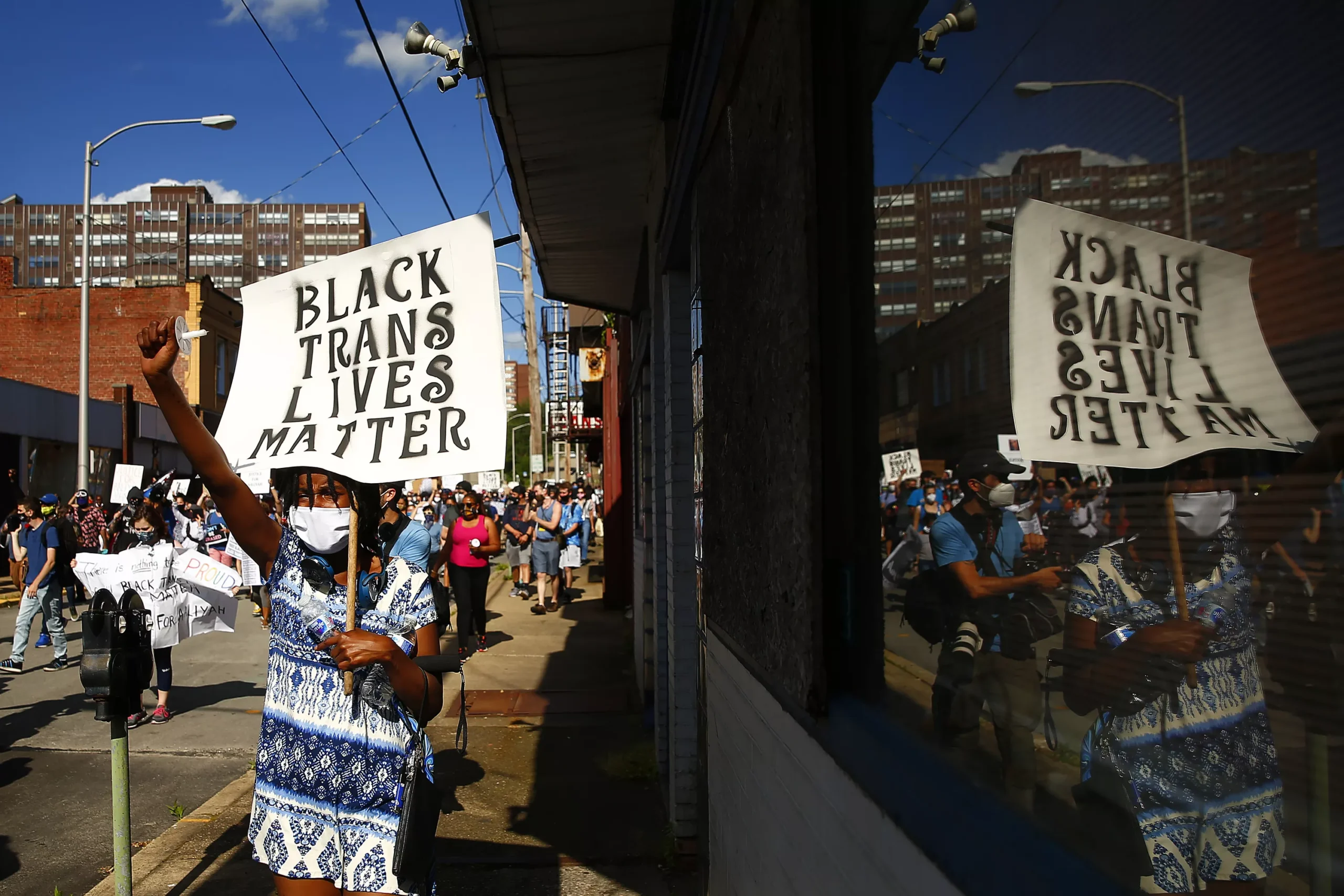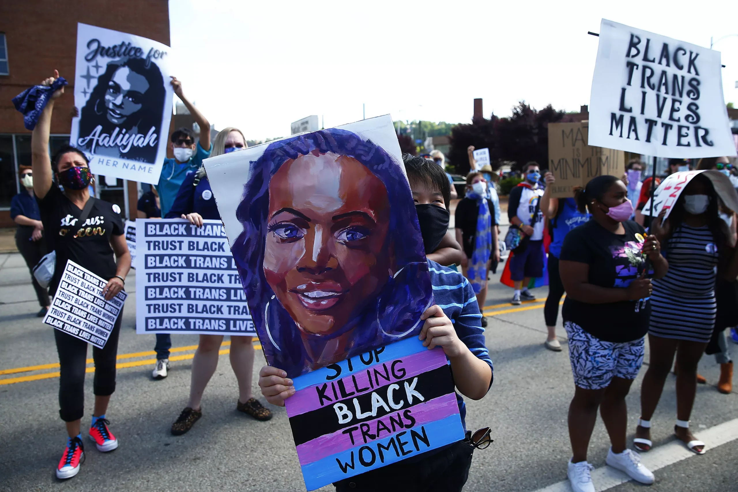 Protesters march through downtown before holding a candlelight vigil in McKeesport demanding answers and an investigation following the death of trans activist Aaliyah Johnson. Credit: CP Photo: Jared Wickerham