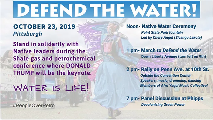 Fourteen environmental, political, and nonprofit groups, including People Over Petro, Breathe Project, and One Pennsylvania, are hosting a full day of events in response to the Shale Insight conference. At noon, the public is invited to “stand in solidarity with members of the Seneca, Sioux, Lakota, and other Native and faith leaders to protect our rivers and waters” at a Native Water Ceremony at Point State Park performed by indigenous leader Cheryl Angel. A march down Liberty Avenue starts at 1 p.m., followed by a rally outside the David Lawrence Convention Center, with music by members of Pittsburgh’s Afro Yaqui Music Collective. The day’s events end with a panel discussion called Decolonizing Green Power, focusing on the green energy efforts being made by Indigenous activists.