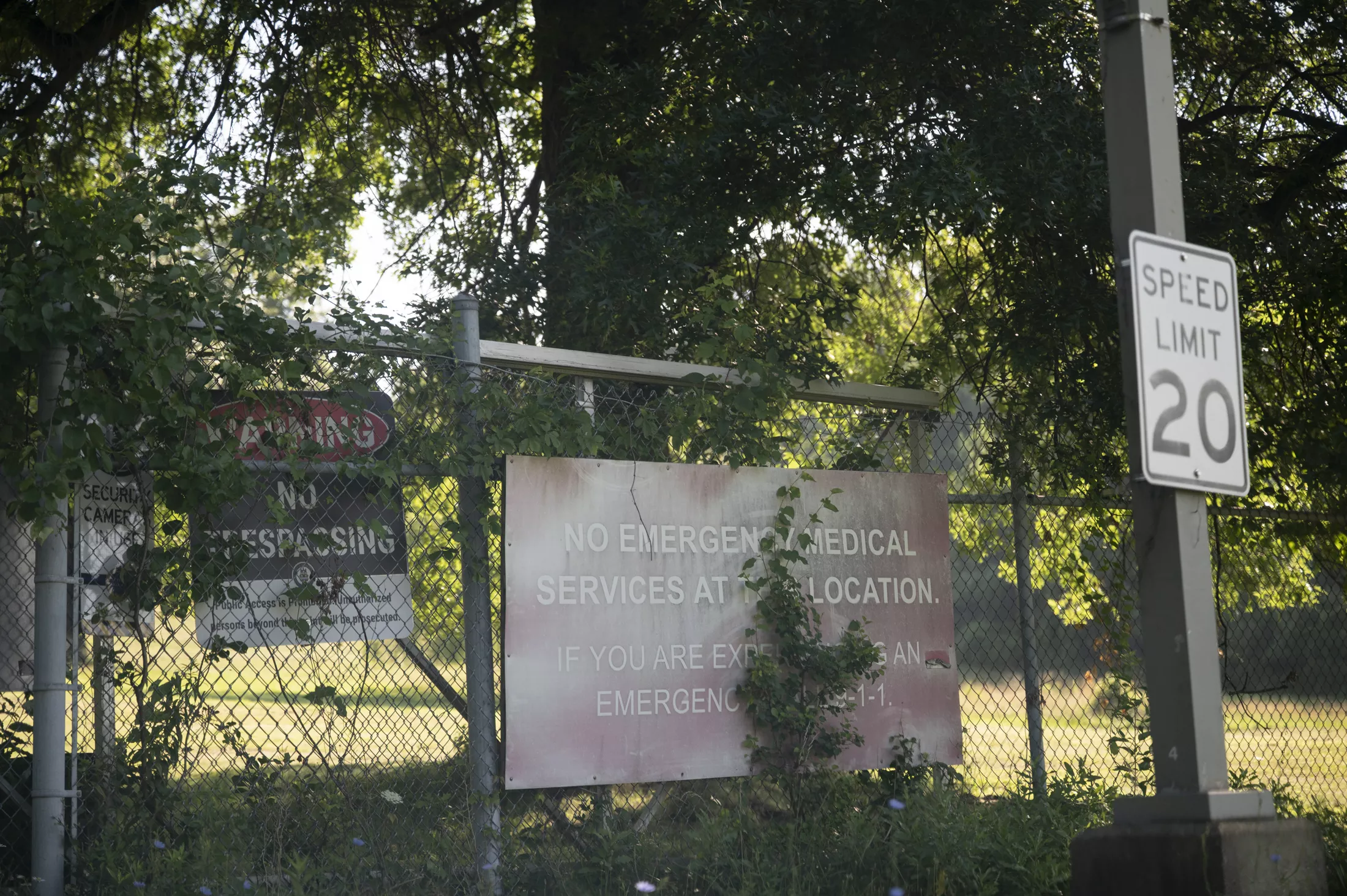 The fence, marked distinctly by several signs that read “No Trespassing,” covers the entire roughly 70-acre perimeter of the old Veterans Administration Hospital, where, in 2019, former Pittsburgh Mayor Bill Peduto proposed reconfiguring it into a center for all things public safety.