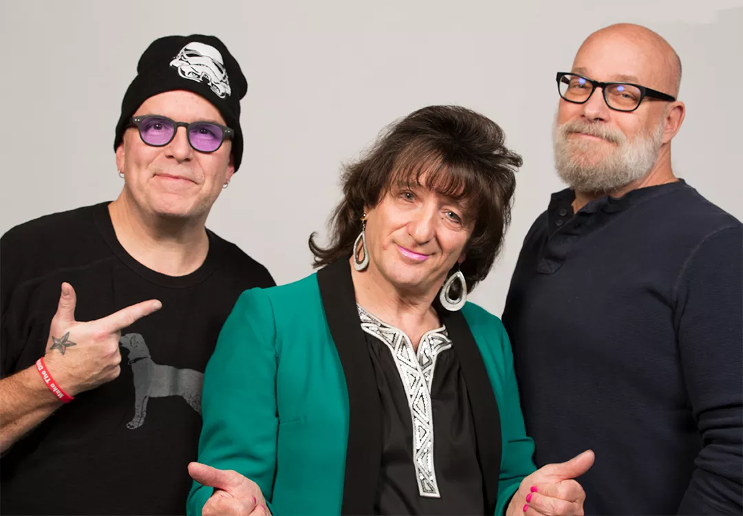 Rachel Ann Bovier (middle) with Scot Fleming (left) and Nyde Handley (right) of BOOM Creative. Credit: Photo: Heather Mull