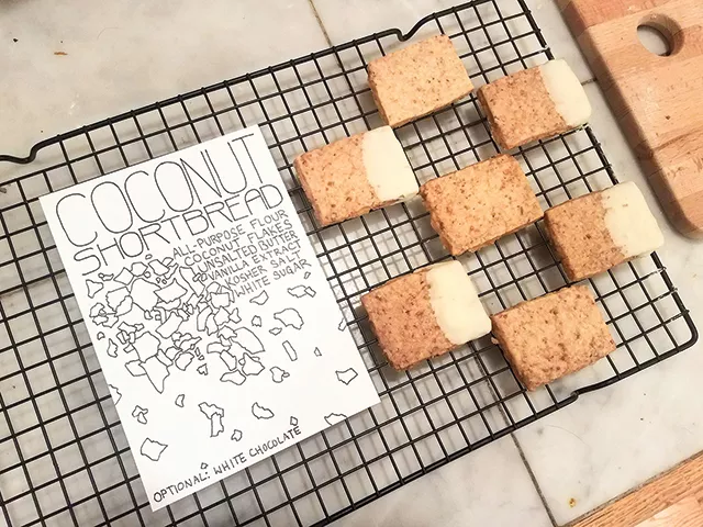 This will be Berezin’s fourth year participating. Last year, because he wanted to learn to be a better cook, he used the opportunity to cook a new dish every day. Afterwards, he drew a recipe card, hand-lettering and illustrating the list of ingredients.