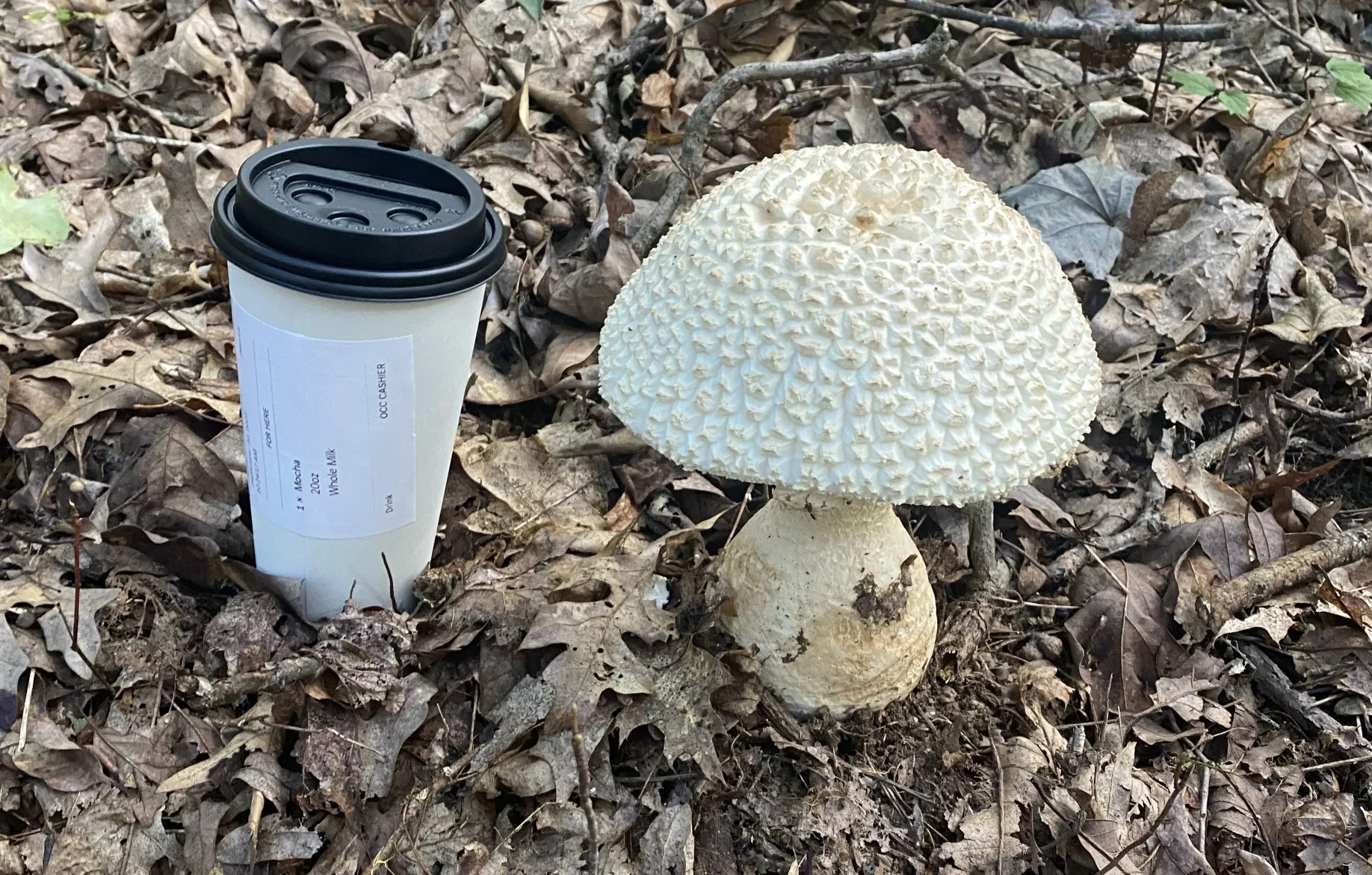 Aminita cokeri mushroom with a 20 oz. mocha latte for scale Credit: Stacy Rounds
