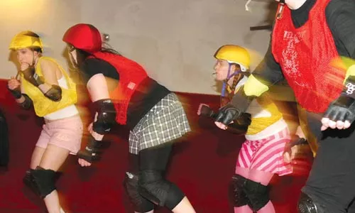 The dozen or so rookies who’ve shown up range in age from early 20s to late 30s. Some are already dressed to fit what’s come to be perceived as the new derby-girl image: short skirts, fishnets, pigtails and tube socks. Others are in jeans, attire that will prove difficult to skate in when they eventually take to the rink. All are enlisting in one of the year-old league’s four teams: the Hot Metal Hellions, the Bitch Doctors, the Slumber Party Slashers and the Wrecking Dolls.
