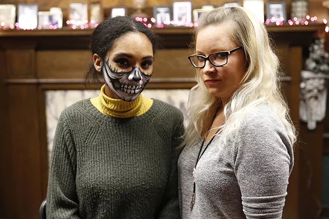 Mollie Himes, the makeup manager at Etna haunted house ScareHouse, effortlessly and flawlessly made me into a kick-ass boney beauty. The process only took about 20 minutes, and in that time, she completely transformed my face. Getting this look, or a variation of this look, is easier than you think.