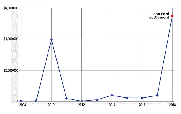 “Mr. Ford is just one example,” says attorney Todd Hollis, who represented an individual who received a $40,000 settlement from the city in 2015. “Payments like these are to compensate victims for injuries they have sustained at the hands of police. I don’t know that you can put a price tag on it.