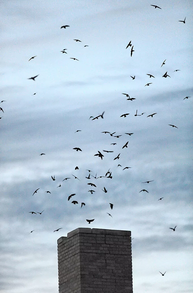 And they are likely not feasting on bugs, says Shema. Instead it is more likely they are “beginning to stage in that area, in preparation to enter the old chimney for the night,” he says. Getting hundreds of birds into one narrow chimney requires a lot of coordination.