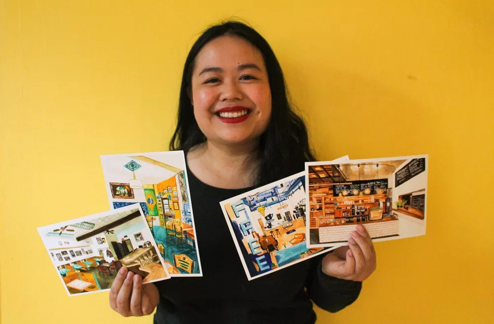 The postcards come in various sizes and are priced from $4 or pay-what-you-can. Proceeds will go toward the highlighted businesses or to charities chosen by the restaurant or coffeehouse owners.
