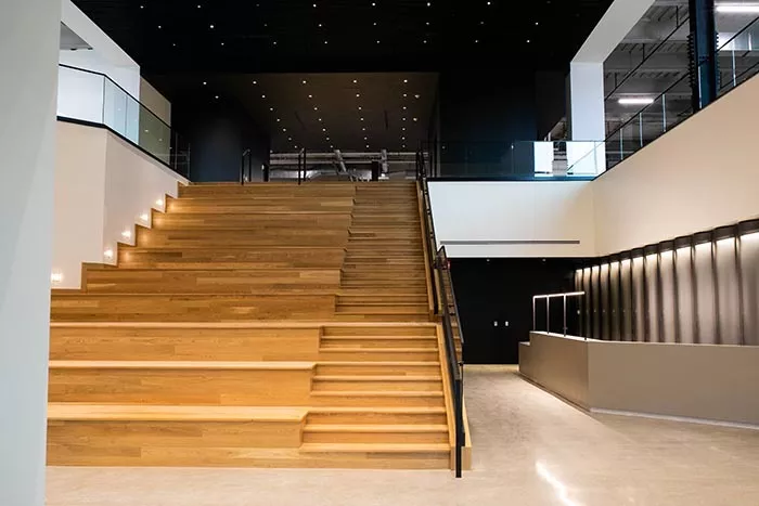 “Box Office” includes modern interiors with large windows to inject natural light to the formerly windowless movie theater. The new office space also now includes 1,700 square feet of private patio outdoor space. The large staircase has been given a modern and sleek facelift. According to a press release, the office space is “geared toward forward-thinking tech and creative tenants” looking to move to Pittsburgh or expand here.