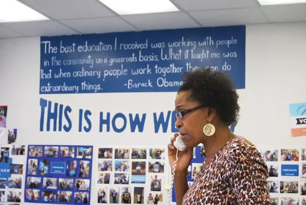 Charlotte Foster, of Penn Hills, works the phone bank at an Obama campaign office in East Liberty