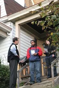 The Harrises have been doorknocking in the heart of Pittsburgh’s Little Italy all afternoon. It has the air of a father/son outing, with the two putting up campaign signs and the younger Harris occasionally checking football scores on his PDA. (“Padre!” he calls out. “Penn State is up by 31!”)