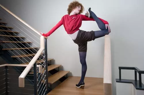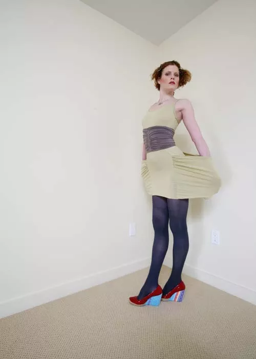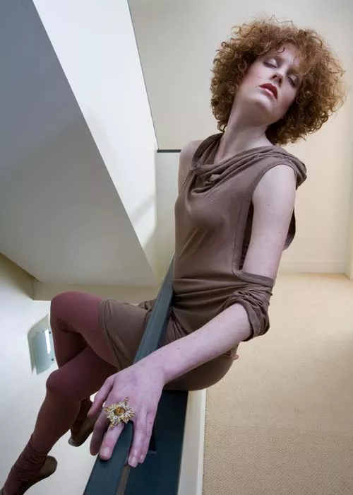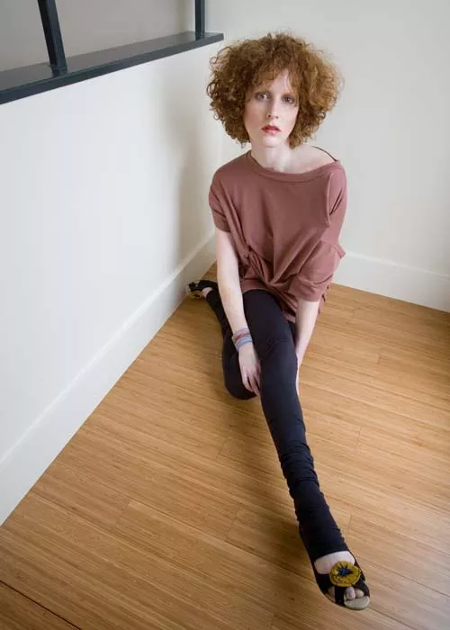 As flexible as the pieces she is modeling, Erin Carey grew up with Anzevino in Brighton Township. After college, Carey ran off to Bristol, England, to study circus performance at Circomedia. There she learned aerial feats on the trapeze, ropes and other suspended contraptions. For the past two years, she worked with the locally based Zany Umbrella Circus. She often partners with Anzevino and Florence as a model and performer in fashion shows.