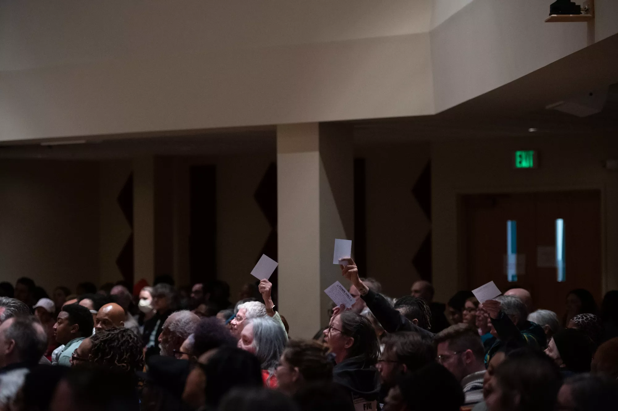 The questions read aloud covered climate change, education funding, affordable housing, free speech on college campuses and more.