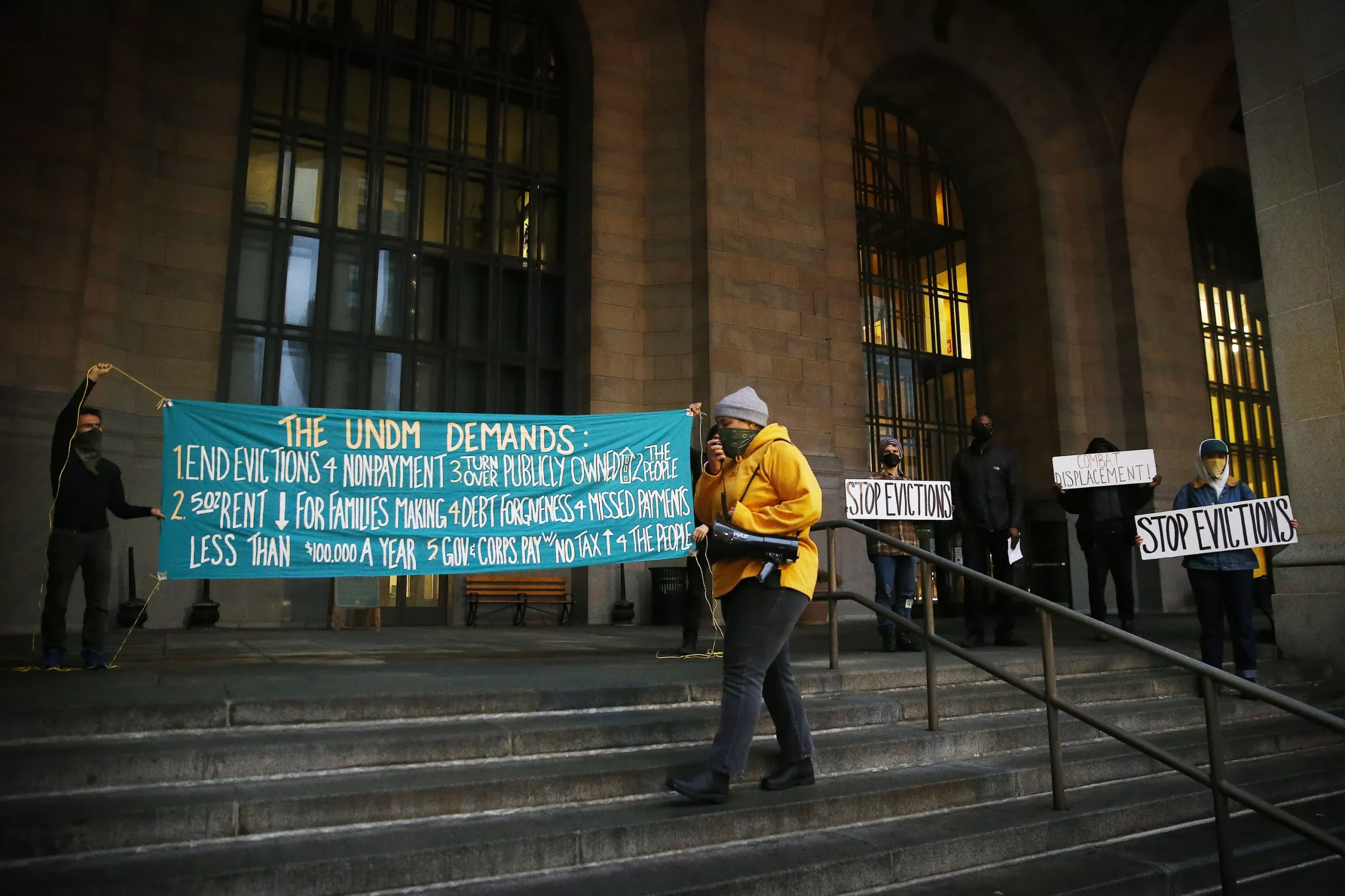 On Feb. 24, a small group of advocates demonstrated in front of the City County Building in Downtown Pittsburgh, calling for an effective and more encompassing eviction moratorium in the city and Allegheny County. The group, the Pittsburgh chapter of the United Neighborhood Defense Movement, held up banners and chanted about the need for more tenant protections during and beyond the pandemic.