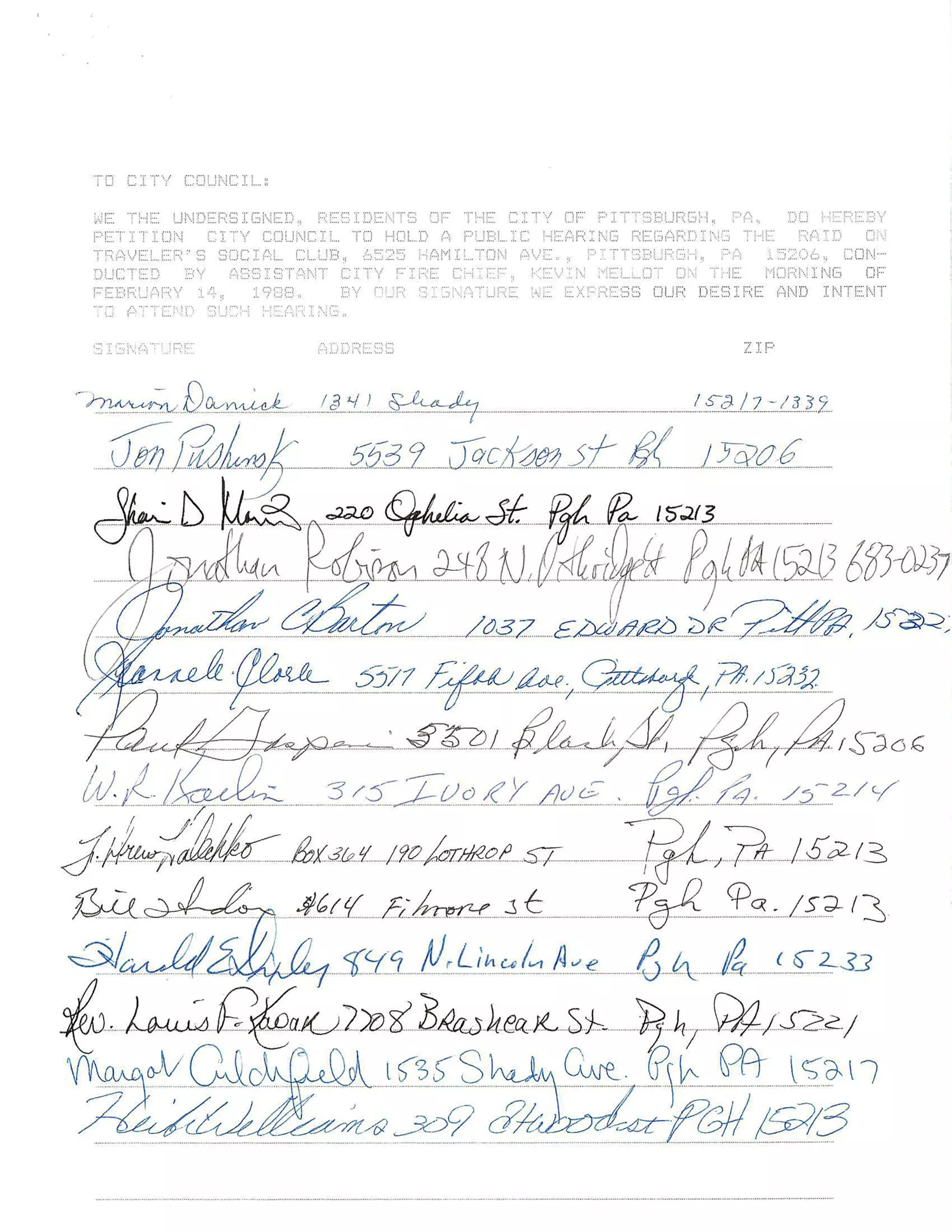 Response to the raid was swift. LGBTQ rights organizations mobilized supporters to sign a petition demanding an investigation and to attend a protest at the City-County Building. Video from the protest is archived by the Pittsburgh Queer History Project.