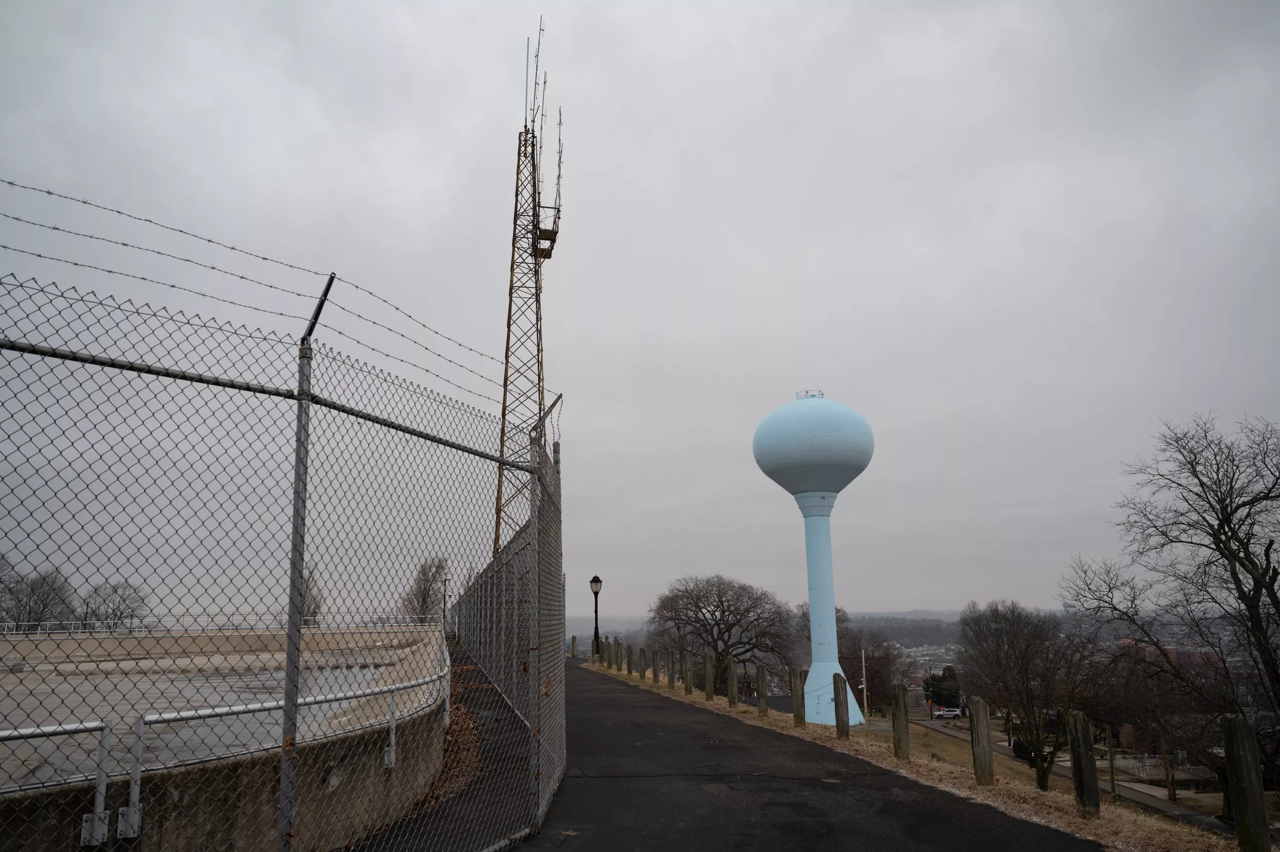 The radio tower on the Herron Hill Reservoir in the Sugar Top neighborhood of Pittsburgh Credit: CP PHOTO: Mars Johnson