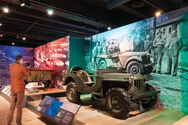 More vividly, the show retells the origin story of the legendary Jeep, which began as a very rapidly prepared prototype at the American Bantam automobile plant in Butler, whose regular production of sadly outdated and comically small cars had essentially ground to a halt during the Depression. The little military vehicle, manufactured in greater numbers by Ford and Willys Overland, famously won the hearts of service members and military officers, who found its unflappable real-world capabilities to be emblematic of American ingenuity and toughness.