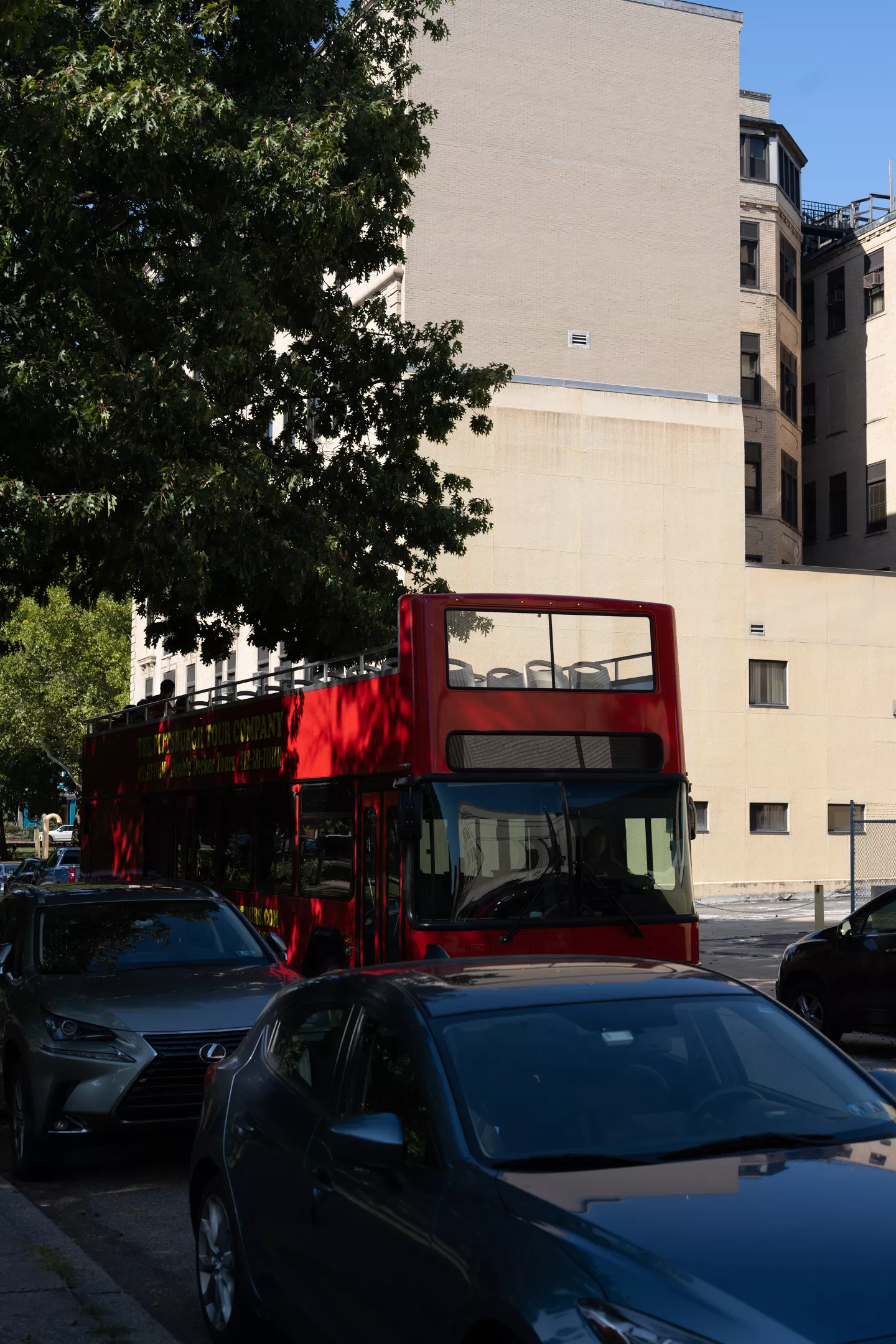 Back when I worked at The University of Pittsburgh, I’d watch the red bus circle the Cathedral of Learning. People in sun hats would pile off at Soldiers and Sailors Memorial Hall, or in the middle of the street at Forbes and Bellefield, presumably to head to the Carnegie museums. They’d also wave from atop the bus, and I’d indulge them and wave back. I’ve been wondering for more than a decade: where is that big red bus going, and who’s on it? Is it from London? Could I just hop on (as advertised) and be whisked away, city buses be damned?