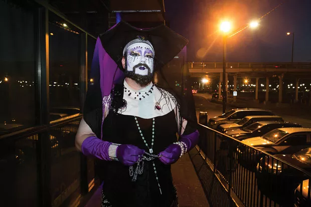 The white face paint is actually a big part of that, which is a tradition that began with one Sister of Perpetual Indulgence, Sister Vicious Power Hungry Bish, who had worked in the theater. “It gives us a street-theater aspect,” Sister Petra says. “People really trust you when you’re wearing the white makeup. And I think it sends the message that if we can go out in the world looking like this, then you can be whoever you are.”