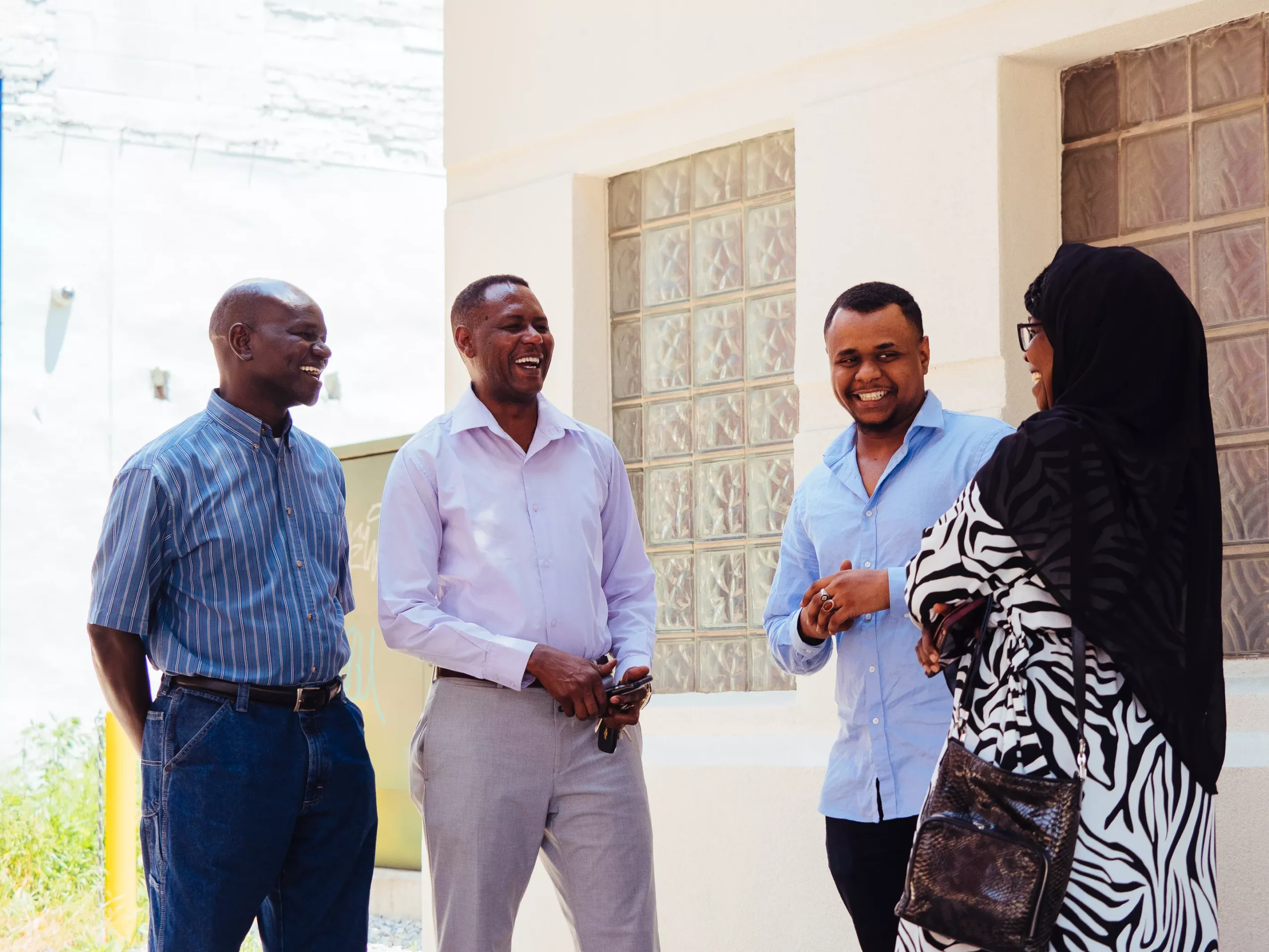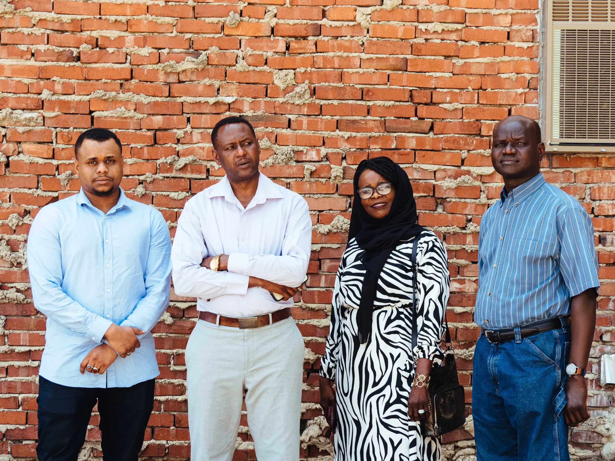 Sudanese refugees Benedict Killang (right), Kawthar Albe, Mohamed Hamid, and Mohamed Fadulla (left) Credit: Photo: Jared Murphy