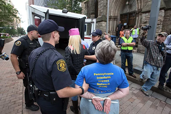 On July 30, hundreds of protesters shut down a block of Grant Street in front of UPMC’s Downtown headquarters. There were chants of “$15 in a union!” and nearly 30 arrests of those who sat in the middle of the street, blocking traffic.