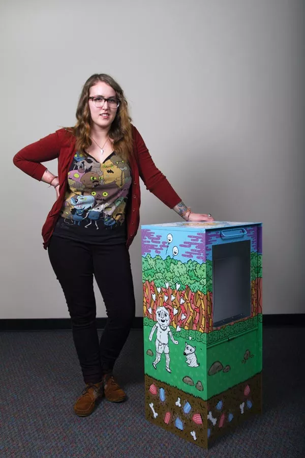 I am in love with cartoons, and I like to think I create my pieces as if they could come to life. Sometimes I wish the public art around here was a bit more playful, so I combined a past layering design and my recent illustration style to make the ArtBox as bold, colorful and fun as possible. When people see it, all I can hope they think is that it had a lot of effort put into it and that it looks cool.