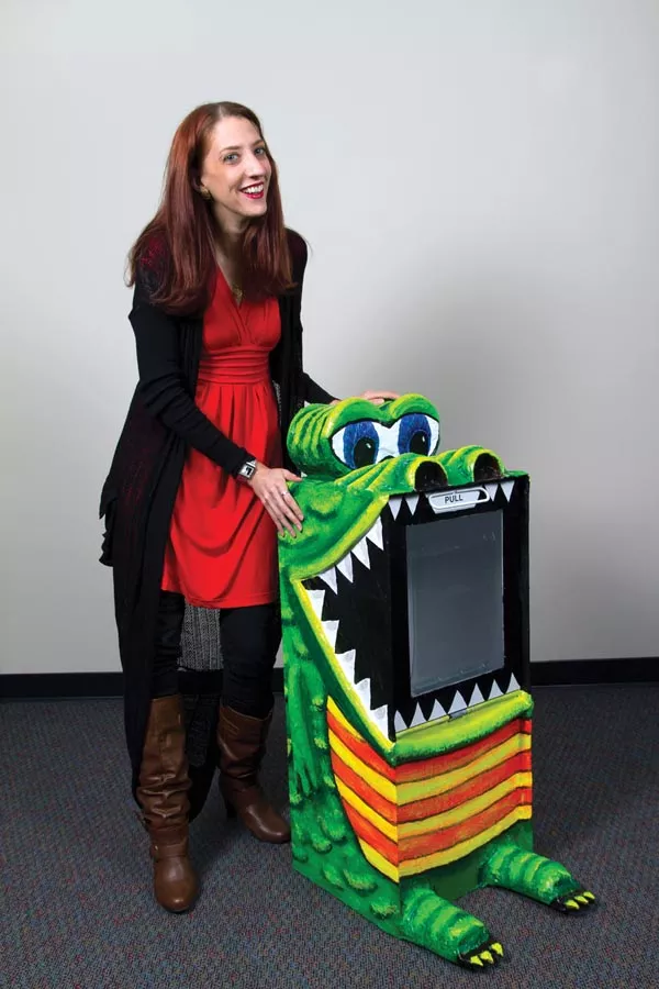 As a puppetmaker, I wanted to bring the ArtBox to life as some sort of creature. Using the door for the mouth was obvious, and the disproportionate size of the mouth just screamed monster (figuratively). My only goal was to create something fun that would make people smile. I’ve been calling it a dragon, but when I showed my 3 year old niece, she said it was a crocodile. She is probably right. Either way, I hope people are kind to him, just in case he figures out how to breathe fire.