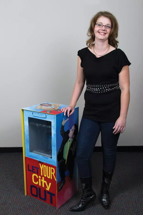 When coming up with the design for the art box, I knew I wanted it to be sort of an optical illusion. The idea was to make it look like the people are inside of the box looking for something that lets them be who they are. The slogan, “Let YOUR city out” is about finding that part of Pittsburgh that speaks to you through the help of the City Paper. When you open the box, you see a painting of downtown Pittsburgh as if to say, “You found it! You found YOUR city!”