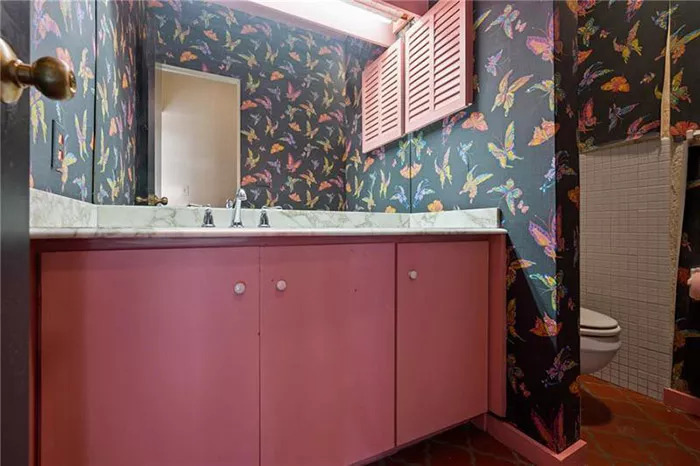 Clicking through the virtual tours of both homes reveals surprises, both in terms of structure and décor. Who could resist a room swathed in grass-green shag carpeting (flower murals really bring enhance the effect), a bathroom plastered in bright butterfly wallpaper, or a brown kitchen that appears unaltered since the 1970s?