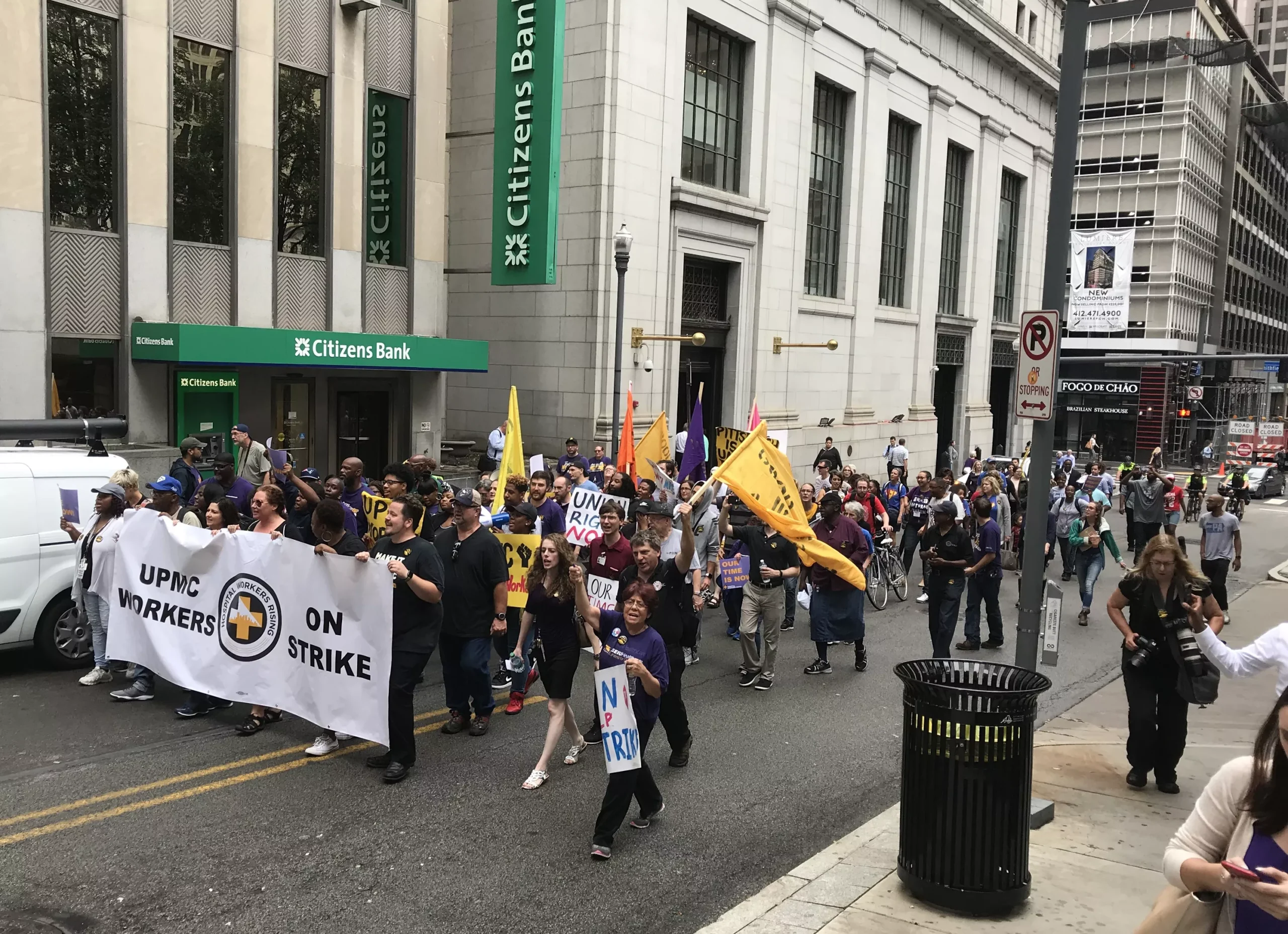 UPMC workers marching Downtown during their one-day strike Credit: CP photo: Ryan Deto