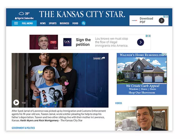 But that complex story ran in contrast to an ad placed on top of the article’s page by Pennsylvania U.S. Senate candidate and current U.S. Rep. Lou Barletta (R-Hazleton). Barletta’s message was simple: “We must stop the flow of illegal immigrants into the country.”