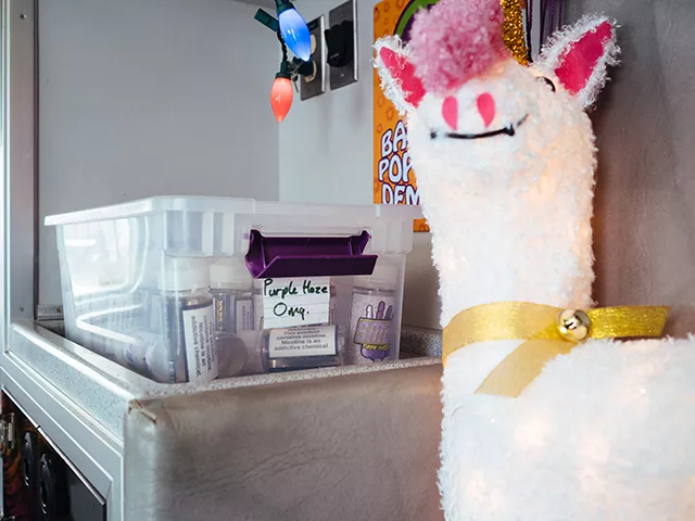 “We wanted it to pop, we wanted people to look at it and be like, ‘What is that? A vape van?’” she says. “We wanted it to be out of the ordinary.”