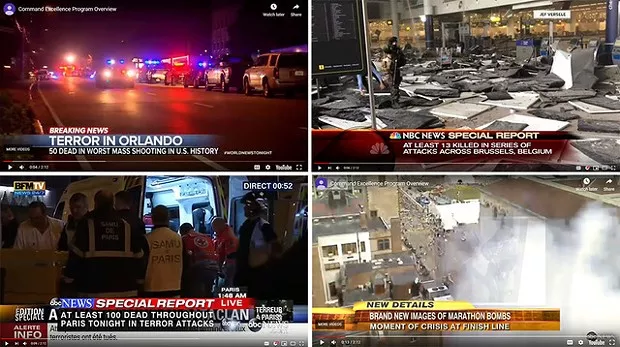Commands Excellence’s website shares a video advertising its services. It was published in January 2017, and it highlights four terrorist events. All four of them had ties to extreme Islamic beliefs or were claimed by extreme Islamic groups like ISIS: the Boston Bombers, the Orlando mass shooting, the Paris terrorists attack, and the Brussels bombing.