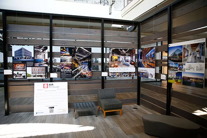 What can architecture do for you? That question underlies the new exhibit by the American Institute of Architects (AIA) currently on display in the mall interior portion of Nova Place, where presentation boards illustrate and describe the many projects that member firms have submitted for this year’s Design Pittsburgh Awards. Commercial high-rises, residential blocks, academic buildings, office interiors, city plans, concert halls, and individual houses all vie for attention.