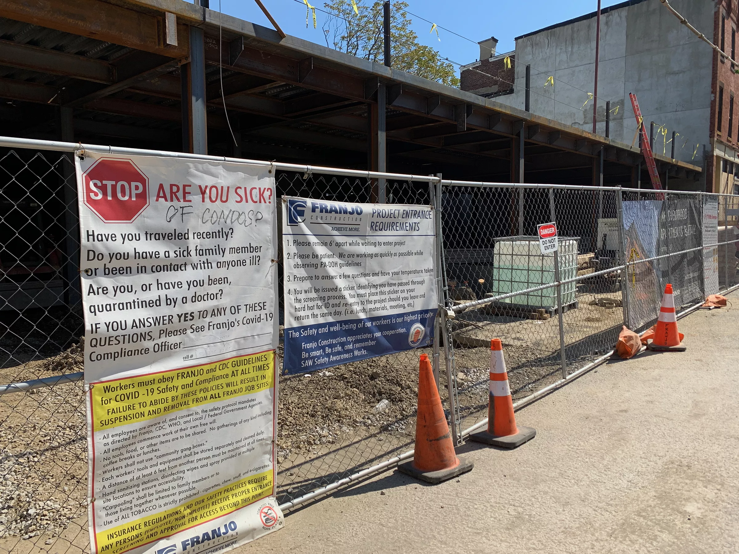 Uptown construction site in 2021 where someone changed a contractor’s sign to read, “Are You Sick of Condos?” Credit: Photo: David S. Rotenstein