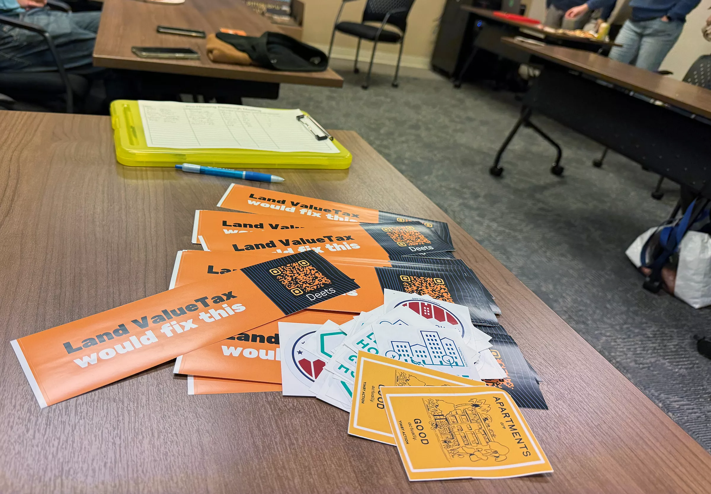 Pro-Housing Pittsburgh used funds from YIMBY Action to produce these stickers. Credit: Photo: David S. Rotenstein