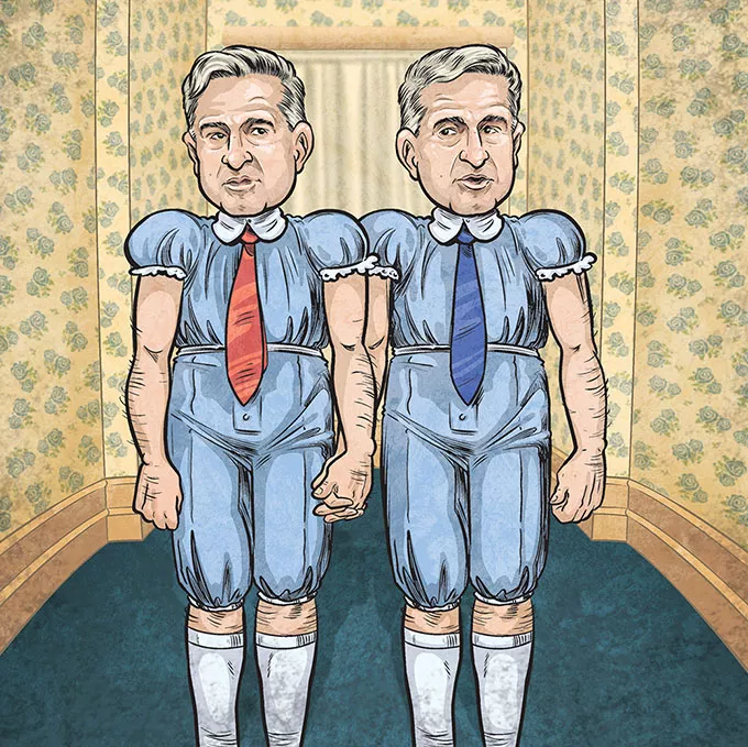 The highest profile of these cases is the most consequential county election this year: Allegheny County District Attorney. The incumbent, Democrat Stephen Zappala, cross-filed this year and is running as both a Democrat and a Republican (which is the reason a caricature of him as the twins from The Shining graces our cover).