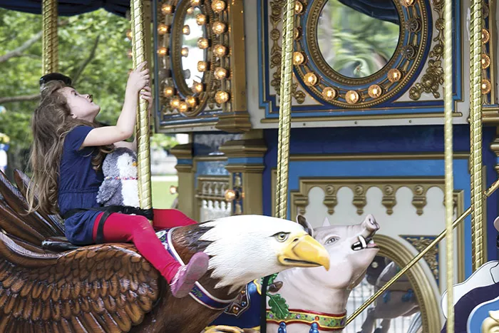 On Friday mornings, story time in Schenley Plaza is followed by a free carousel ride, hosted by Pittsburgh Parks Conservancy. The park is bus accessible. If driving, park once and walk to quite a few activities in the neighborhood. If you can’t make the free ride on Fridays, the carousel is open Wednesdays-Sundays, April through October, from 10 a.m.-6 p.m. A ride token is $2, and it is wheelchair accessible.