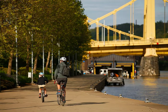 If you don’t own a bike, Healthy Ride has you covered. The bike-share company has more than 100 stations located throughout the city and most are in neighborhoods familiar to newcomers (Downtown, Oakland, Lawrenceville, East Liberty, and the Strip District); a station map and instructions on how to ride are available at healthyridepgh.com.
