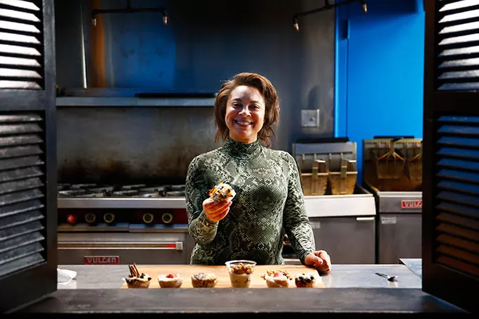 Her business model also veers away from the brick-and-mortar model familiar to most bakeries. Since GetMo started, Stanton has seen a demand for delivered catering, especially with business clients tired of the same old franchise donuts or sandwiches provided at breakfast or lunch meetings. Now she gets consistent orders that could range up to a couple hundred breakfast boxes, which contain regular or gluten-free muffins and a serving of yogurt and granola. GetMo also carries sandwiches for breakfast and lunch, and tater tots smothered in a variety of toppings.