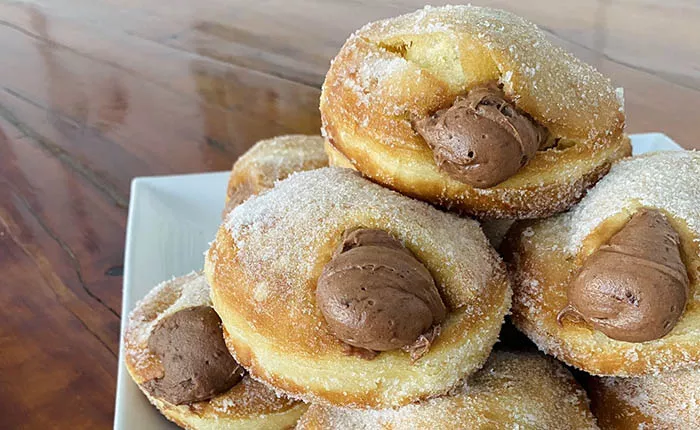 Fruit is the surprise star in Pane é Pronto’s Raspberry Nutella Bombolinis. The Italian spot from the owners of DiAnoia’s Eatery and Pizzeria Davide offers a wide assortment of breads and pastries, including these fried donuts rolled in sugar and filled with raspberry Nutella whipped cream.