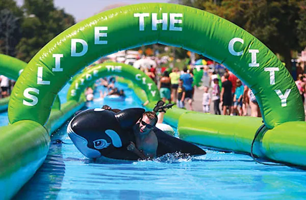 Slide the City. A 1,000-foot water slide will brighten city streets this weekend. www.slidethecity.com