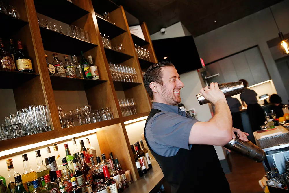 Bartender Jimmy Wise mixes a cocktail behind the bar at Siempre Algo. -